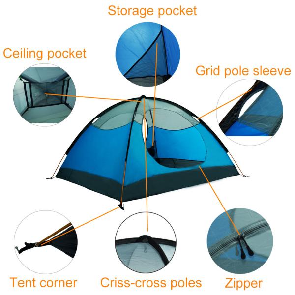 1. Cross pole, through bar design gives greater stability to the tent to withstand heavy winds, while remaining lightweight.